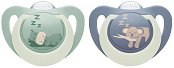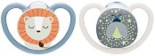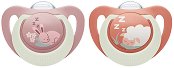 Клинично доказано е, че естествената и ортодонтска форма на биберони и залъгалки NUK съответства на формата на майчиното зърно по време на кърмене и е особено подходяща при комбиниране на кърмене и дохранване с шише. Компанията предлага голямо разнообразие от серии залъгалки, които могат да се разделят според материала, от който са направени. Има залъгалки от силикон - такива са сериите Fashion и Freestyle и залъгалки от латекс (естествен каучук) от сериите Happy Kids и Soft. Съществуват и серии, които обединяват залъгалки от силикон и такива от каучук - Adore, Genius и Starlight.