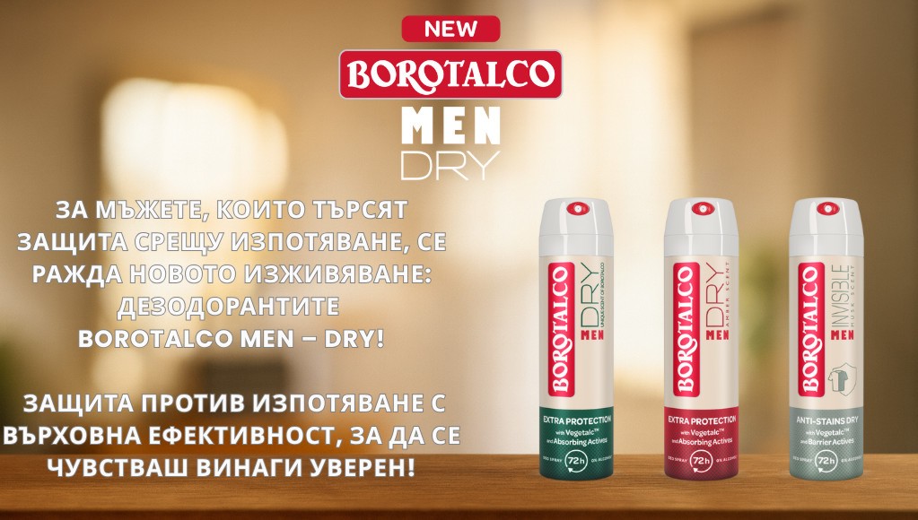 Дезодорантите Borotalco Men са създадени специално за мъжете, които търсят максимална защита, без да правят компромис с увереността и стила. Формулите им са обогатени с Vegetalc™ – иновативна смес от естествени растителни пудри, и абсорбиращи активни съставки, които ефективно намаляват изпотяването, и оставят кожата суха и гладка.