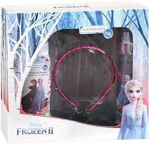 Подаръчен комплект, с който ще зарадвате малките почитателки на анимационния филм "Замръзналото кралство". Той се състои от шампоан и балсам 2 в 1, блестящ спрей за коса и диадема.