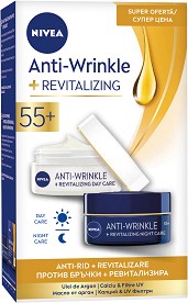 Nivea Anti-Wrinkle + Revitalizing 55+Комплект от дневен и нощен крем против бръчки от серията Anti-Wrinkle+ Доставка:
