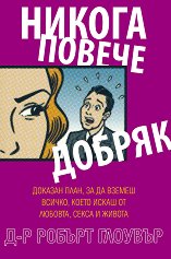 Доказан план, за да вземеш всичко, което искаш от любовта, секса и живота. Книгата разказва за проблема на безброй мъже и не е хроника за успехите им, а за техните грешки! Никога повече добряк промени живота, като даде посока и надежда на хиляди мъже и жени по света! Никога повече добряк ще те напътства в живота ти да тръгнеш в много различна посока, ще те накара да израснеш и да бъдеш интегриран и уникален с твоята сила, самоувереност, смелост и страст, както и твоите несъвършенства, грешки и тъмни страни. Не е нужно да бъдеш по-добър, за да си харесван и обичан, да задоволяваш нуждите си или да имаш хубав живот. ... |