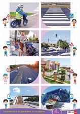 Комплектът включва 7 учебни табла по Безопасност на движението по пътищата за работа с деца в 4. група на детската градина. Темите на таблата са: табло № 1: Градът / селото в което живея; табло № 2: На улицата; табло № 3: Пътувам с автобус, трамвай, тролейбус; табло № 4: Моят път до детската градина; табло № 5: Изправност на велосипеда; табло № 6: Кои знаци познава велосипедиста; табло № 7: На площадката за велосипедисти. Всяко табло е с приблизителни размери 50 x 70 cm и има лайсни в горната и долната си част. По зададената тема има и задачи, с които да се провери и затвърди наученото. ... |
