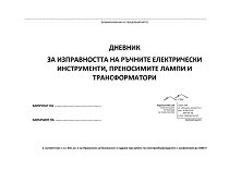 Дневникът е в съответствие с чл. 416, ал. 2 на Правилник за безопасност и здраве при работа по електрообзавеждането с напрежение до 1000 V. ... Работодателят с писмена заповед определя лица с трета квалификационна група от електротехническия персонал, които следят за изправността на ръчните електрически инструменти, преносимите лампи и трансформатори и ежемесечно извършват визуални проверки на здравината на корпусите, изправността на изолацията на ръкохватките, състоянието на захранващите кабели и здравината на щепселните съединения. Резултатите от проверките се отразяват в този Дневник за изправността на ръчните ... |
