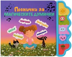 Музикалната книжка съдържа пет песнички за магическите думички: Извинявай; Благодаря; Моля; Обичам; Здравей. С нейна помощ децата ще научат значението на магическите думички, докато пеят песничките и се забавляват. Песничките са с текст на Весела Усмивка, музиката и аранжимента са дело на Йордан Владев, а красивите илюстрации на Яна Попова. Книжката е с твърди корица и страници, и батерии, които са включени в комплекта и могат да се сменят. Батерии и инструкции за смяна Използвайте 3 бутонни батерии, тип AG10/LR1130. Батериите да се сменят само от възрастен. При смяна отвийте винтчето и отстранете ... |