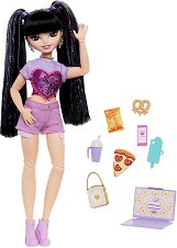 Комплектът е на тема Barbie, където ще откриете още играчки, игри и пъзели. ... Комплектът от Mattel ще се хареса на всяко момиченце. Той се състои от кукла и различни аксесоари като лаптоп, чантичка, чаша, парче пица, пакетче чипс, сладолед, обеци и много други. Рене пристига с красива визия и уникален тоалет. Тя има дълга черна коса с блестящи кичури, вързана на две опашки. Облеклото ѝ включва тениска, къси панталони и обувки на висок ток. Куклата има подвижни ръце в китките, лактите и раменете, краката ѝ се движат в коленете и таза, а главата може да се върти. Куклата е с приблизителна височина 32 cm. ... |