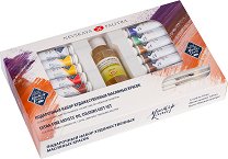 Комплектът от серията Master class на Невская Палитра включва 12 тубички с маслени бои по 18 ml, ленено масло и 2 четки за рисуване. Палитрата от цветове се състои от традиционни за художниците бои на базата на естествени глинени, кадмиеви, кобалтови и железооксидни пигменти. Маслените бои се отличават с чистота на цвета и висока устойчивост на светлина. Те не променят първоначалния си тон след изсъхване, което им позволява да се използват при реставрационни работи. ... |