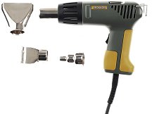 Пистолет за горещ въздух, предназначен за оформяне и заваряване на пластмаси, за спояване и разпояване на електронни компоненти, за премахване на пластове боя и лак без агресивни химикали, за изсушаване и ускоряване на процесите на втвърдяване при бои, лакове, както и за обгаряне и "изпичане" на дървени изделия. Подходящ за залепяне и разлепяне на стикери и етикети. Пистолетът за горещ въздух е с две степени на температурата на нагряване, с вграден термостат за защита от прегряване. Накрайникът е от неръждаема стомана. В комплект с три допълнителни накрайника с различна форма. Характеристики: мощност: І - ... |