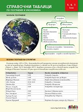 Ламинираните справочни таблици по география и икономика за 5. клас, 6. клас и 7. клас са разработени по най-новите учебни програми и са част от комплекта с помагала за прогимназиалния етап на издателство БГ Учебник. Справочните таблици представят науката география в нейната цялостност и комплексност, като са разработени справочни материали и опори с термини, понятия, карти, статистически материали, картосхеми, диаграми, таблици и снимки по природна, обществена и регионална география. Подредбата на съдържанието ще позволи на учениците да ползват справочните таблици непосредствено в учебния процес в 5., 6. и 7. клас, ... |