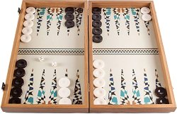 Класическата настолна игра "Табла" от "Manopoulos" ще стимулира логическото мислене, концентрацията и способността за планиране на играчите. Тя се състои от практична дървена кутия, облицована със змийска кожа, която служи както за съхранение, така и за игрално поле, 30 седефени пула, разделени в два цвята по 15, 2 пластмасови зара, кубче за удвояване и чаши за зарове. Кутията е в тъмно сив цвят. Таблата е настолна игра на дъска със зарове, която е сред най-древните игри в света. Играе се с пулове, които се местят според резултата от хвърлянето на заровете. Като печели този участник, който успее да ... |