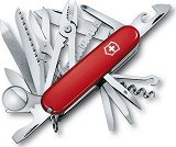 Мултифункционалният инструмент Swiss Champ на Victorinox е надежден и компактен, което го прави подходящ за ежедневно носене или употреба на открито. Разполага с ергономична дръжка, осигуряваща сигурен захват и прецизна работа с ножа. Снабден е с 2 остриета, изработени от неръждаема стомана, и още 31 функции. Характеристики: материал на острието: неръждаема стомана материал на дръжката: ABS/cellidor пластмаса функционалности: голямо острие малко острие ножица отварачка за бутилки плоска отвертка 6 mm отвертка 3 mm инструмент за разбиване на стъкла отварачка за консерви кръстата отвертка PH шило ... |
