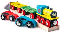 Автовозът от "Bigjigs Toys" ще бъде чудесно допълнение за детската влакова композиция. Комплектът съдържа локомотив с 2 вагона, 2 колички и релса. Той е изработен от дърво, боядисано с безвредни бои на водна основа. Релсата е с дължина 27 cm. За по-забавна игра можете да закупите още аксесоари и релси от серията "Rails". ... |