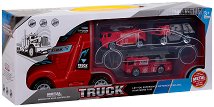Комплектът от "Dickie" ще зарадва всяко дете, което харесва големите тежкотоварни машини. Той се състои от камион с голямо ремарке, с което превозва мини самосвал и багер. Ремаркето има подвижни елементи - като при истинските камиони, то може да се вдига и сваля, каросерията на самосвала и лопатата на багера се движат нагоре и надолу. Играчките ще осигурят часове забавление на вашето дете! Приблизителната дължина на камиона е 33 cm, а на самосвала и багера е 9 cm. ... |