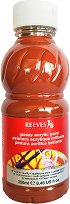 Акрилната боя на водна основа от Reeves е лъскава, лесна за употреба и може да се нанася направо от бутилката, без да е необходимо да се разрежда. Разреждането ѝ с вода обаче може да помогне за постигане на по-течна консистенция и да помогне на боята да се разлеле по повърхността. След като изсъхне боята става гъвкава и устойчива. Различните цветове от продуктувата линия се смесват добре и се комбинират хармонично, осигурявайки високо качество на покритие. Освен за рисуване, боята се използва и за разнообразни декорации, декупаж и скрапбукинг, защото се комбинира с широк диапазон от материали и крафт техники. ... |