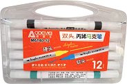 Акрилните маркери Aodemei са двустранни и подходящи за рисуване, оцветяване и декориране върху различни повърхности като хартия, дърво, стъкло, камък, пластмаса и метал. Всеки маркер разполага с два върха - твърд и мек, което позволява съчетание на прецизни линии и по-широки щрихи. Мастилото е акрилно, с ярки и наситени цветове, осигуряващи равномерно покритие и плавно нанасяне. Маркерите са удобни за работа при различни творчески техники - рисуване, калиграфия, декорации и DIY проекти. Маркерите в комплекта са подредени в практична пластмасова кутия с дръжка за лесно съхранение и пренасяне. ... |