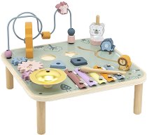 Открийте света на играта и ученето с дървената масичка от Tooky Toy – перфектен център за активности, който комбинира забавление, образование и креативност в едно! Масичката е създадена специално за малки изследователи и предлага разнообразие от занимания – лабиринт с мъниста, сортер с дървени форми, писта с животни, зъбни колела и движещи се елементи. Всеки детайл е в меки, пастелни цветове и е лесен за хващане от малките ръчички. Под плота има практична мрежичка за съхранение на частите. Тази играчка стимулира фината моторика, координацията око-ръка, разпознаването на цветове и форми, както и пространственото мислене. ... |