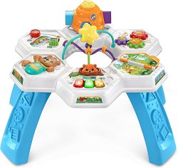Помогнете на вашето мъниче да развие своите умения с активната маса от "Vtech". Тя се състои от множество игри, които да забавляват и учат детето. Върху масата малчуганът ще открие книжка, телефон с цифри, въртележка и други. Забавата не спира до тук! Масата има мини пиано, с което детето може да изсвири нотите "До", "Ре", "Ми" и "Фа". Играчката разполага с 2 възможности за игра, общо 6 елемента за забавления и 13 мелодии, песнички, думи и фрази, на английски език. Измежду песничките ще чуете "Twinkle Stars", "Bing", "Oh Susannah" и други. ... |