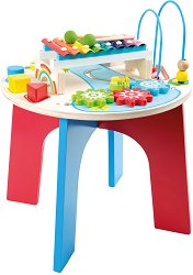 Активната маса от Small Foot е подходящо забавление за малчуганите на възраст над 18 месеца. Тя е изработена от дърво и е боядисана с безвредни бои на водна основа. Масата предлага различни занимания и образователни игри, които ще научат децата на разнообразни дейности. Чрез нея те ще се запознаят с ксилофона, лабиринта, различните форми, функцията на зъбите колела и цветовете. Така по време на играта, малчуганите ще учат и ще се забавляват без да губят интерес. Масата е с височина 47 cm. ... |