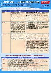 Справочникът по български език е предназначен за подпомагане на учениците в 5. клас, 6. клас и 7. клас при подготовката им за устни и писмени изпитвания, за конкурсни и приемни изпити и състезания, за Национално външно оценяване в 7. клас. Изданието съдържа цялата информация, включена за изучаване по български език в учебните програми за 5. клас, 6. клас и 7. клас, обобщена, систематизирана и структурирана в 18 теми, представени върху 12 ламинирани страници, неблестящи и щадящи очите. Гъвкави, здрави и удобни за дълготрайна употреба. Представените езикови понятия и явление са изяснени на точен и достъпен за ... |