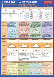 Справочник с правила и примери по алгебра и геометрия. В справочникът Зная как... по математика кратко, прегледно и систематизирано в цветен табличен вид е представено най-важното от съдържанието по алгебра и геометрия за учениците от 5. клас, 6. клас и 7. клас по учебната програма, в сила от 2024 / 2025 г. Справочната информация е поместена в 4 страници и е подредена по реда на изучаването ѝ. Учебното помагало е полезно за усвояване на нови знания, при работа в час, за подготовка по часовете по математика, за подготовка за изпити и НВО, за преговор. Съдържа цветни справочни таблици, чертежи, определения, ... |