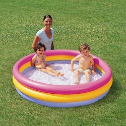 Направете къпането и играта на Вашия малчуган още по-забавни, като му подарите този цветен бебешки басейн от "Intex"! Той е с дълбочина 25 cm и има три хоризонтални надуваеми пояса с диаметър от 86 cm, като всеки един от тях е в различен цвят - розов, жълт и син. Детското басейнче може да се използва както на плажа, така и у дома. А в студените месеци може да се превърне в страхотно място за игра, като се напълни с разноцветни топки. Препоръчва се поставянето на басейна върху специална подложка за басейн, тъй като асфалтът или друга твърда повърхност могат да доведат до повреда или спукване. За да надуете ... |