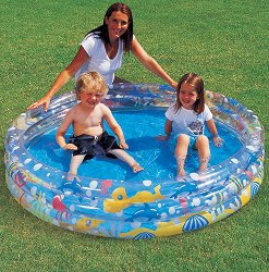 Хайде на море... в двора! Това е напълно възможно с компактния басейн от висококачествен винил на „ Intex “. Той е с квадратна форма (159 cm) и дълбочина 50 cm, а на сините му стени има изрисуван цял коралов риф. Широките странични стени на аква-атракцията повишават безопасността му. Басейнът е с три въздушни камери с двойни клапани (за надуване и спихване). Стените му са високи половин метър, а вместимостта му е 499 литра, при запълване на 80%. Дъното на съоръжението е подсилено, като на него, за удобство, има практичен клапан за изливане на водата. За да надуете най-бързо и лесно този продукт, ви е необходима помпа. ... |