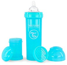 Бебешкото шише за хранене на "Twistshake" е изработено от висококачествен полипропилен без съдържание на BPA, BPS и BPF, който е безопасен и устойчив при продължителна употреба. Шишето е с вместимост 330 ml и широко гърло, което улеснява пълненето му с течност и почистването му. Биберонът е произведен от мек и устойчив силикон, който не дразни нежните бебешки венци и е подходящ за бебета над 4 месеца. Разработената от "Twistshake" анти-коликова система "TwistFlow" не позволява поглъщането на въздух от бебето по време на хранене и подава равномерно храна, като по този начин намалява значително ...