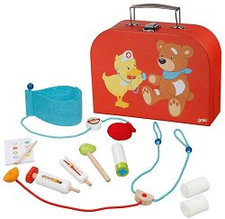 Комплектът от Goki ще зарадва всички малчугани, които искат да бъдат лекари, когато пораснат! Той е подходящ за деца над 3-годишна възраст и се състои от куфарче, в което има стетоскоп, термометър, апарат за кръвно, спринцовка, бинт и много други аксесоари от първа необходимост. Елементите са изработени от текстил и дърво, боядисани с безвредни бои на водна основа. Пациентите могат да бъдат детските кукли или плюшени играчки, а защо не и най-добрият приятел на вашето дете? Куфарчето е с размери 25 / 23 / 8.5 cm. ...