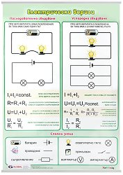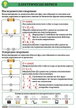 Учебното табло "Електрически вериги" е ламинирано, с лайсни и въже за закачане и е с размери 50 x 70 cm. Таблото съдържа информация за: последователно свързване успоредно свързване схемни знаци ... |