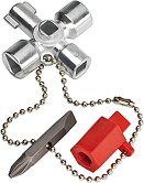 Кръстатият ключ на Knipex е предназначен за контролни табла, газоснабдителни, водоснабдителни и електроснабдителни изключващи системи. Освен това е подходящ за технически инсталации в сгради като климатични и вентилационни системи, спирателни вентили и главни разпределителни табла. Той е изработен от цинк и има хромово покритие. Ключът разполага с обща дължина на рамото 76 mm. Към него са включени и комплект накрайници. Характеристики: шлиц 1.0 x 7 mm и кръстат връх PH2 адаптер за битове 1/4", захванат с верижка допълнителен държач за битове 1/4" допълнителен четиристен 5 mm ... |