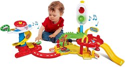 Пистата е част от серията "Junior", където ще откриете още играчки и комплекти по темата. ... Комплектът за игра на "Bburago" се състои от количка "Ferrari" и елементи за сглобяване на писта състояща се от 3 част - светофар, сгъваема писта с волан и трасе. Светофарът има светлинни и звукови ефекти, които имат за цел да научат малчугана да разпознава неговите светлинни сигнали. Воланът може да се сгъва и разгъва. В разгънато състояние е с височина до 32 cm. Детето може да играе с него отделно или заедно с останалите компоненти от пистата. Отделно той представлява симулатор снабден с огледало ... |
