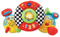 Цветната интерактивна играчка от Vtech предлага реалистично шофьорско изживяване за най-малките - с мек волан за въртене, мигачи, стартов бутон, скоростен лост и множество звуци, които стимулират сетивата и въображението. Светещият бутон с форма на автомобил привлича вниманието на детето и възпроизвежда забавни звуци на кола, а страничното огледало насърчава самоопознаването. Малчуганите ще се забавляват с бутона за клаксона и ще се учат, докато играят. Играчката може да се използва както на пода, така и прикрепена към количка с удобни предпазни каишки. Тя включва 4 песнички и 10 мелодии и запознава децата с ... |