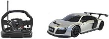 Количката с дистанционно управление от Rastar ще зарадва малките и големи ентусиасти. Тя е изработена със специално внимание към всеки детайл и представлява умален модел Audi R8. Дистанционното, което е във формата на волан може да задвижва колата напред, назад, наляво и надясно, а освен това активира клаксона и други реалистични звуци. Колата работи с 4 батерии 1.5 V AA, а дистанционното с 3 батерии 1.5 V AA, които можете да закупите отделно. Важно! Цветът на продукта може да се различава от показания на снимката. При поръчка ще го получите в цвят на случаен принцип. ... |