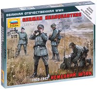 Комплект от 4 мащабно умалени фигури от пластмаса на войници от германски щаб, част от серията "Великата отечествена война" на "Zvezda". Брой части: 16. Средна височина на фигурата: 24 mm. Мащаб на комплекта: 1:72. За сглобяването на комплекта не е необходимо лепило. Фигурите са направени от едноцветна пластмаса. Може да се боядисват с боички. ... |