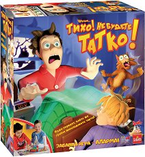 Можеш ли да устоиш на вкусна шоколадова торта? Не! Сега имаш възможност да се промъкнеш по среднощ до хладилника, но внимавай да не събудиш татко. Той спи дълбоко в своето легло, но около него има много препятствия, които могат да го събудят. Бъди внимателен, за да избегнеш шумовете по пътя си към целта. Извикай своите приятели и се опитайте заедно да се впуснете в предизвикателството за вкусна, топяща се в устата шоколадова торта. Победител е този, който пръв премине всички капани и препятствия и достигне до хладилника. Играта "Тихо, не будете татко" работи с 2 батерии AAA, които можете да закупите отделно. ... |