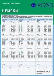Включва 100-те най-важни неправилни глагола! ... За всички, които искат бързо да проверят спрежението на немските неправилни глаголи. Специалното помагало е във формата на ветрило и позволява с един замах да намерите търсения от Вас глагол и да видите пълните му форми за спрежение. Компактният му формат позволява да се носи навсякъде. ... |