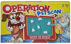 О не, кучето на Сам е изяло всичко каквото види пред себе си! Помогни му да изкара ненужните боклуци от тялото си, за да не се разболее. С настолната игра "Операция: Скенер за домашни любимци" от "Hasbro" децата ще научат животинската анатомия по интересен и забавен за тях начин и ще развият своята сръчност и координация. В играта могат да участват от 2 или повече души на възраст над 6 години. След като чуят звуците, които "пациента" издава, с помощта на пинцети малките лекари трябва да извадят правилните части от анатомията и да "оперират" успешно своя пациент. Настолната игра ...