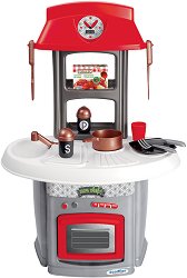 Малкият човек ще се превърне в истински майстор готвач с детската кухня. Тя има дизайн в син и оранжев цвят. Разполага с фурна, 2 котлона, рафтове, тостер, мивка, сушилник за чинии и 38 аксесоара. Те включват хранителни продукти, прибори, чинии, тенджера с капак и тиган. Храните са патладжан, морков, пилешко бутче, хлебче, доматен сос, сода, риба в консерва, домат и други. Приборите включват черпак, шпатула, нож и чаши. Котлоните светят и издават звуци. Единият издава звук от пържене, а другия от вряща вода. Силата на звука и светлината могат да се регулират от копчетата отпред. В тостера има място за филия хляб, която ще ... |