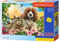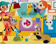Комплект от 6 пъзела за най-малките със симпатични животинки. Всеки от пъзелите се състои от две части, като цветовете на животните са подбрани така че да помагат при сглобяването. Комплектът развива сръчността, логическото мислене на детето и го запознава с някои домашни любимци. ...