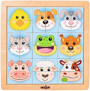 Малкият човек ще се забавлява с животните от Woodyland. Пъзелът е изработен от дърво и има 18 части. Частите могат да се наредят в дървена поставка. Животните, с които ще се запознае малчугана са жаба, овца, крава, катерица, заек, пиле, куче, прасе и котка. Дайте шанс на вашето дете да развие своята фина моторика, сръчност и въображение. Размерите на пъзела са 22.5 / 22.5 / 1 cm. ...
