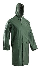 Дъждобранът на "Coverguard" е изработен с основа от памук и полиестер и двустранна PVC промазка, която осигурява перфектна водонепропускливост. Дъждобранът е шит и швайцван (с двойно топло подлепени шевове), с качулка, пристегната с шнур, ластик от вътрешната страна на ръкавите и отвори за проветрение. Закопчаването е двойно с цип, покрит с пластрон, и тик-так копчета. Има 2 прави джоба с хоризонтални капаци. Дебелина: 0.32 mm. Дължина: 120 cm. ...