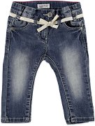 Бебешките дънки на "Babyface" са изработени от мека и приятна на допир материя със състав 98% памук и 2% еластан. Те се отличават със светъл десен, леко изтъркан ефект и джобове в предната и задната част. Широчината на талията им лесно може да се регулира от вътрешната страна, посредством широк ластик с копчета. Копчетата са без съдържание на никел и не предизвикват кожни раздразнения. Пране: Могат да се перат обърнати наопаки в перална машина, на стандартна програма при 40°С. ... |