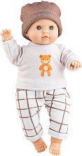 Момченцето е част от серията Mini Pikolines, където можете да намерите още реалистични и детайлни кукли бебета в комплект с различни аксесоари. ... Куклата от испанския производител Paola Reina е изработена от материали с най-високо качество, и е сглобена и декорирана на ръка. Изработена е от мека пластмаса - винил, без съдържание на фталати, а фините детайли правят куклата да прилича на истинско бебе. Облечена е с бежови гащички. Куклата е с височина 32 cm, ръцете и краката ѝ могат да се движат, а главата да се върти. Очите не се затварят, а бебето има характерния за марката лек аромат на ванилия. За разлика от ... |