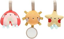 Плюшените играчки Rainbow на Pearhead разполагат с лента, която ги прави подходящи за закачане на детска количка или детско легло. С форми на дъга, слънце и звезда те ще забавляват вашето бебе. Играчките имат интерактивни дърпащи се лентички, писукащи части, мек плюш с лъскави копринени текстури и огледало. Благодарение на тях, тези играчки помагат на детето да разпознава форми и силуети и да развива зрението и слуха си. Всяка играчка е с приблизителни размери 11.18 / 10.16 / 4.06 cm. ... |