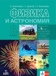 Първа част за 9. клас при обучение с интензивно изучаване на чужд език. Учебникът е одобрен от МОН. ... "Много често чуваме: Защо да уча физика? Това е толкова трудно! Да, не е лесно, защото трябва да се овладеят много нови понятия и знания. Трябва да се създаде друг, уникален начин на мислене, който се възпитава най-вече с изучаването на физика. Защото физиката е всеобхватна наука и нейното овладяване е критично, за да разбираме света около нас, света в нас и света, който ще остане след нас. Това е най-фундаменталната наука. Физиката предизвиква нашето въображение с идеите за относителността, тъмната материя, ... |
