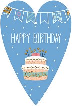 Поздравителната картичка-таг на "Gespansterwald". Тя е със стилен и модерен дизайн. С нея може да покажете загриженост и внимание към някого, празнуващ специален за него ден. Тя е с форма на сърце и има пробив в горната си част, през който можете да прокарате връв и да я прикачите към подарък. Върху нея са изобразени торта и надпис "Happy Birthday" и е подходяща за рожден ден. Поздравителната картичка е с размери 10.9 / 16.1 / 0.15 cm и с включен плик. ... |