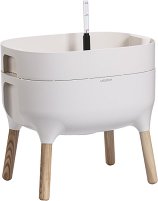 Саксията на "Plastia" съчетава модерен дизайн от пластмаса и дърво. Тя е подходяща за отглеждане на билки, стайни растения и малки зеленчуци както у дома, така и на покривната градина. Състои се от 2 съда - горен за растенията и долен за вода. Самополивната система държи растенията винаги напоени, осигурява необходимото количество въздух и отдава на растението точно толкова вода, отколкото има нужда. Растенията се напояват чрез фитил, чийто краища поемат вода от резервоарчето и отдава към корените му. Саксията е с размери 51 x 38 cm. Характеристики: обем на саксията - 21.7 l обем на резервоара - 13 l ...