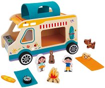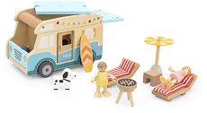 Комплектът от Viga Toys ще се хареса на всеки малчуган. Той се състои от кемпер, 2 шезлонга с възглавнички, чадърче, барбекю, масичка, сърф, 2 фигурки и кученце. Елементите са изработени от дърво, оцветени в ярки цветове. Кемперът разполага с вдигащ се капак, както и отварящи си врата и багажник. Фигурките имат подвижни ръце и крака, като по този начин могат да заемат различни пози. С комплектът вашия малчуган ще могат да развият своето въображение докато пресъздават различни истории. ... |