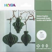 Комплектът с коледни играчки от хартия на Heyda съдържа 3 различни триизмерни висулки със семпъл дизайн, който пасва на всеки интериор. Хартиените капки са изработени от цветен картон с плътност 120 g/m 2. Направени по типа пчелна пита, при разтваряне, образуват издължени клетки със страхотен 3D ефект. Всяка форма е с приблизителна височина 10 cm. Хартиените висулки са изключително лесни за сглобяване, отворете всяка и закрепете с кламера, включен в комплекта. Хартиената висяща украса е подходяща за декорация на клонки, елхи, гирлянди или като висящ декор на витрини в магазини, офис помещения или заведения. Създава ...