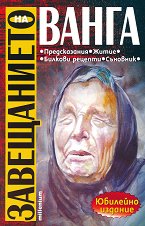 Съставител: София Петрова. ... Юбилейното издание Завещанието на Ванга е сборен том с всичко, запазено като пророчества, рецепти, съвети и наставления от великата пророчица. Книгата е посветена на 20 годишнината от смъртта на Баба Ванга - един от малцината световно признати феномени, чиято слава отдавна е надхвърлила пределите на страната и континента ни. В книгата ще откриете: предсказания; житие; билкови рецепти; съновник. ...