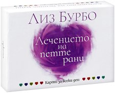 Този комплект карти е допълнение към книгите Петте рани, които пречат да бъдеш какъвто си и Лечението на петте рани. Целта им е да ви подкрепят да приложите на практика съветите на Лиз Бурбо и да ускорите лечебния процес. С тяхна помощ ще осъзнаете по-добре раните, от които страдате, и най-вече, ще вървите по-уверено по пътя към изцелението. Комплектът съдържа общо 55 карти, по 11 карти за всяка от петте рани. Всеки ден можете да теглите на случаен принцип една от тях и да изпълнявате предложеното от Лиз Бурбо на нея."Тези карти са създадени, за да ти помогнат да осъзнаеш по-добре раните, от които страдаш, и ...